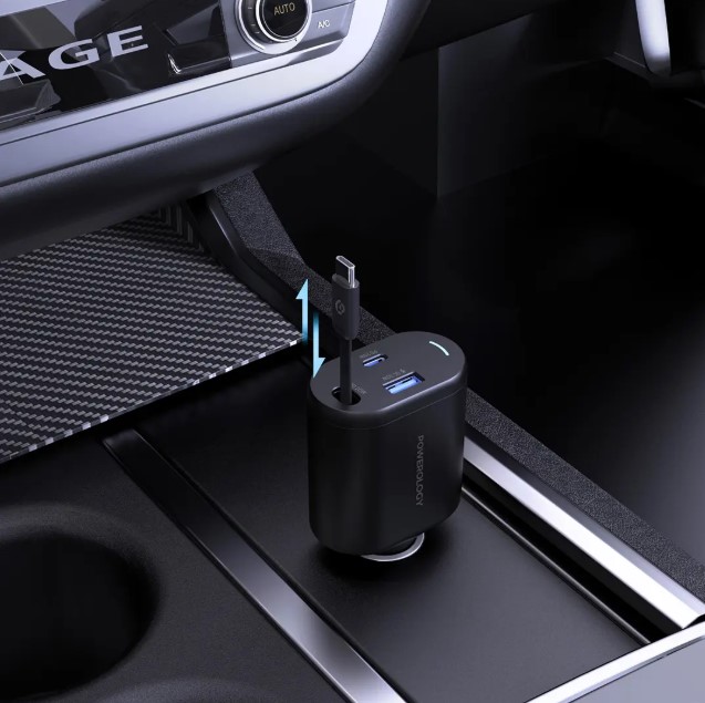 Powerology PCCSR019 65 W Type‑C Retractable Car Charger – USB‑A + Built‑in Retractable Cable (103 W Total) Price in Oman