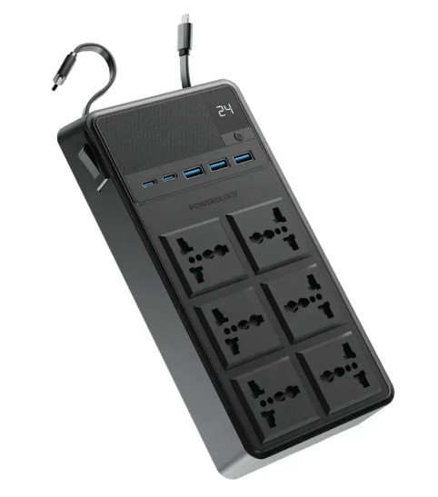 Powerology 2500W 6AC Power Strip with Built-In Retractable Cables – PWCUQC030