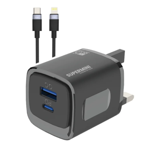 Pawa Super Mini Travel Charger TC25CUUL – 30W PD + QC Fast Charging Adapter with Braided USB-C to Lightning Cable (Price In Oman)