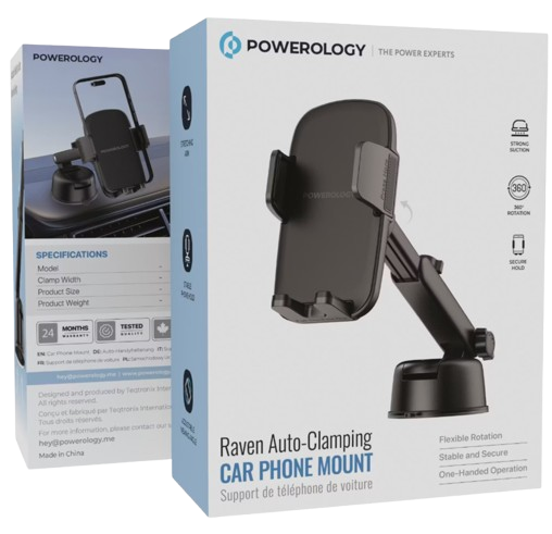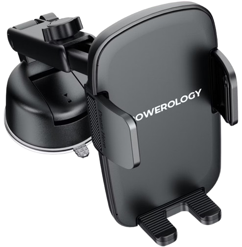Powerology Raven Auto-Clamping Car Phone Mount PWRLX08BK – Strong Suction, 360° Rotation, 5.5-9 cm Clamp |