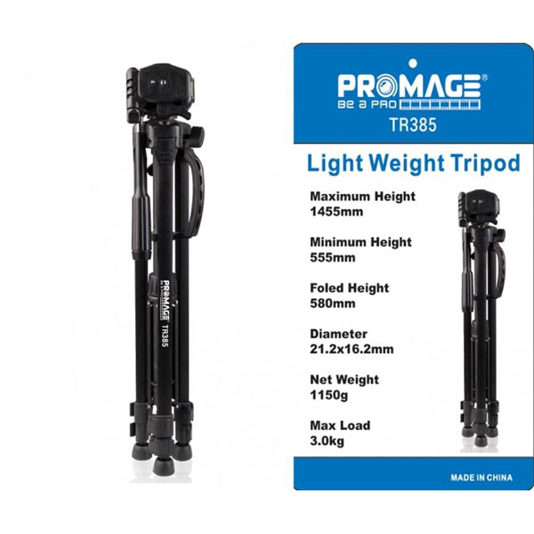 Elevate your photography and videography with the Promage TR385 Tripod, designed for stability, portability, and versatility in Oman. This adjustable tripod stand offers a lightweight yet durable aluminum frame, perfect for photographers and vloggers looking for reliable support on the go.