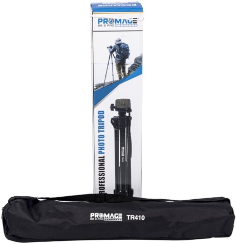 The Promage TR410 tripod includes a smooth ball head with a quick-release plate, allowing fast camera mounting and effortless adjustments for precise framing. With adjustable height and a foldable design, it fits comfortably in your gear bag while offering flexibility in shooting angles.