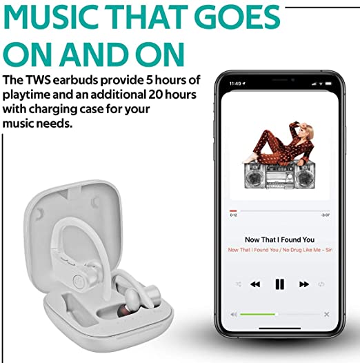 The Promate Motive TWS earbuds offer up to 5 hours of continuous playback, with an additional 15 hours provided by the compact charging case, totaling 20 hours of battery life.