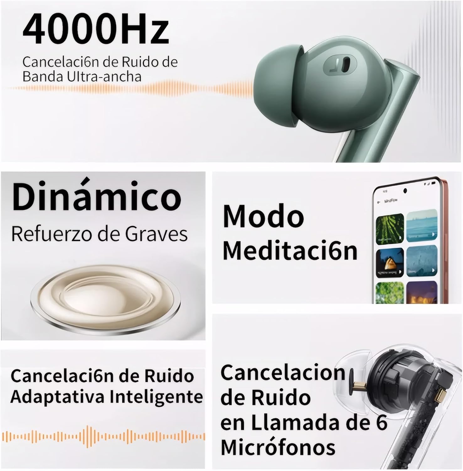 Enjoy up to 40 hours battery life with the charging case (ANC off) and around 5–6 hours per charge with ANC on. Designed with IP55 water resistance, they’re sweat- and dust-resistant — perfect for workouts or daily commutes. Available in stylish Forest Green and Flame Silver finishes, the Realme Air 6 ANC earbuds Oman also offer intuitive touch controls, six microphones for crystal-clear call quality, and support for Google Fast Pair.