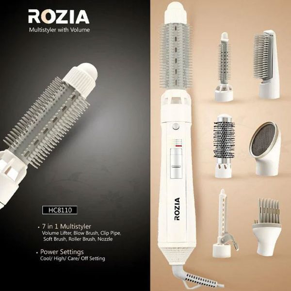 Rozia 7‑in‑1 Hair Styler HC8110 – Volume Lifter, Blow & Curl Brushes, Hair Dryer & Straightener in One