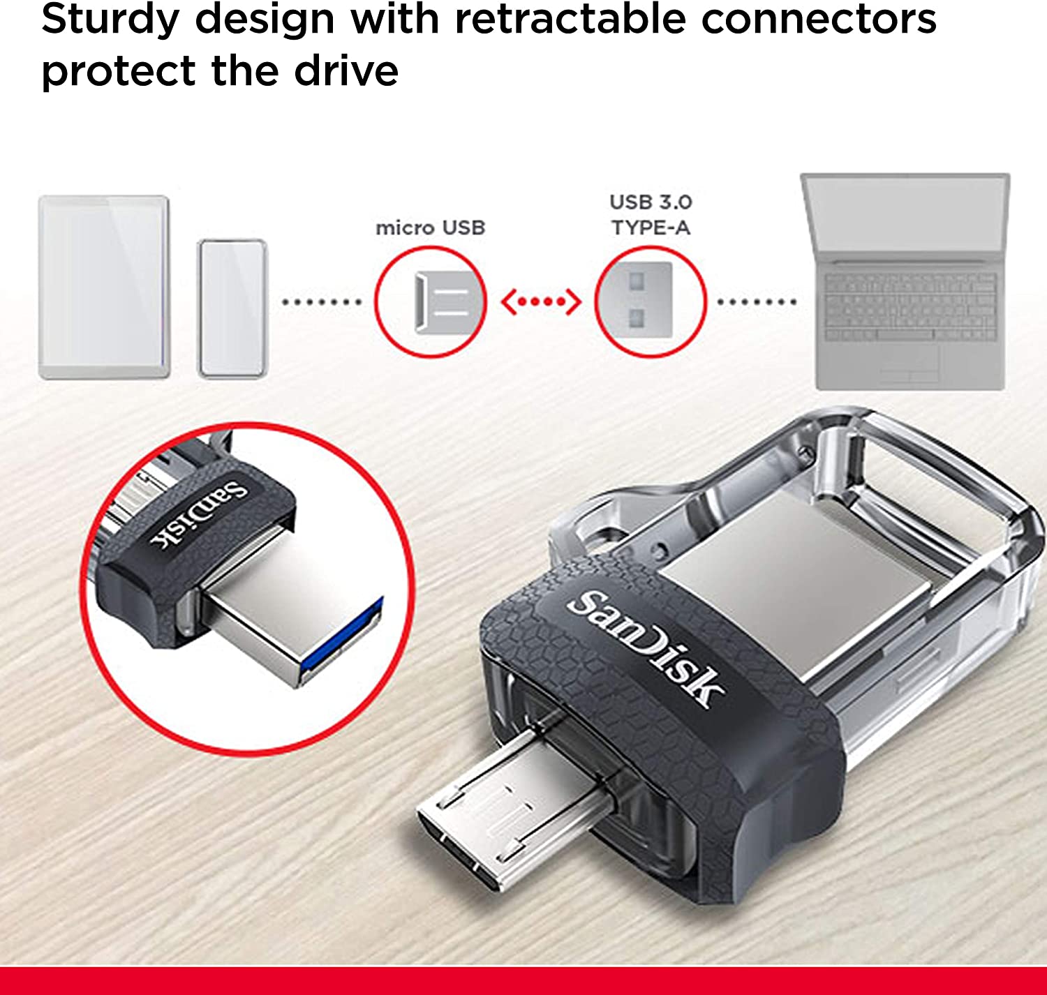 SanDisk Ultra Dual Drive m3.0 64GB USB 3.0 OTG Flash Drive – High-Speed, Dual Connector, Secure Storage,