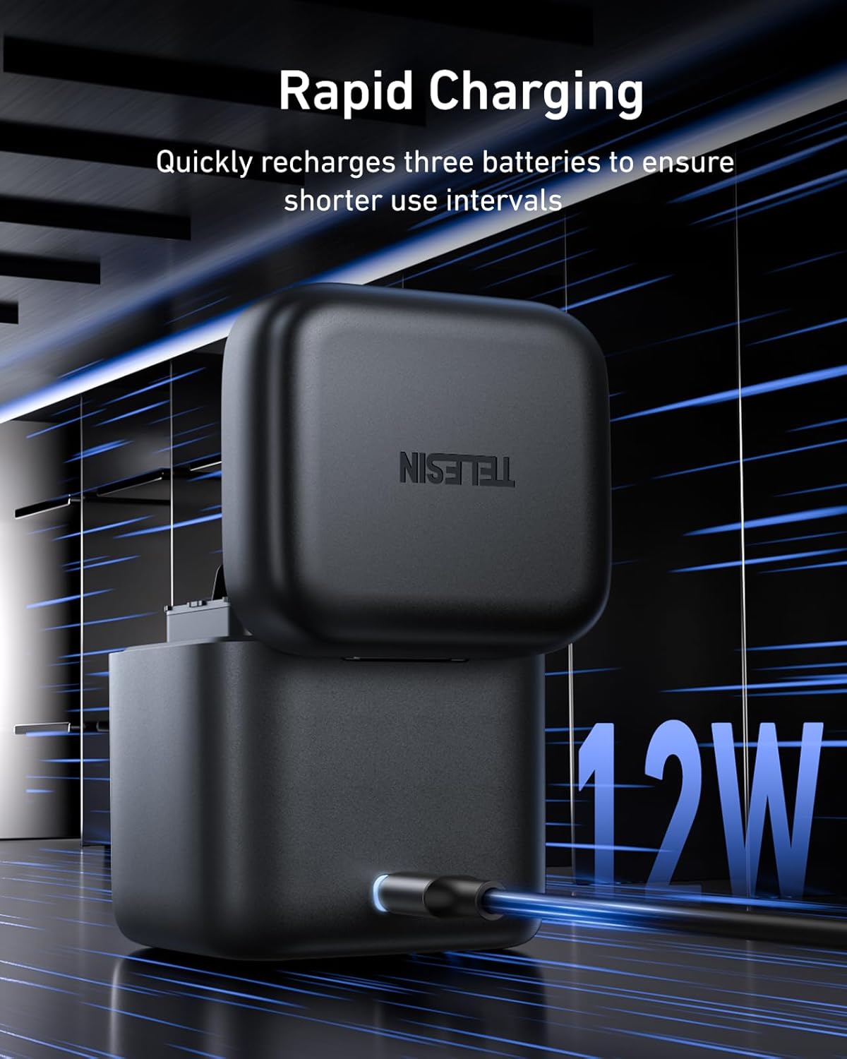 Keep your GoPro ready for action with the Telesin 3-Port GoPro Battery Charger BCG902 — the ultimate battery charging station for creators and adventurers. This 3-port charger is designed to charge up to three GoPro batteries simultaneously, helping you stay powered on location or during extended shoots. With fast charging capability, it fills standard GoPro lithium batteries in about 2 hours per slot under optimal conditions.
