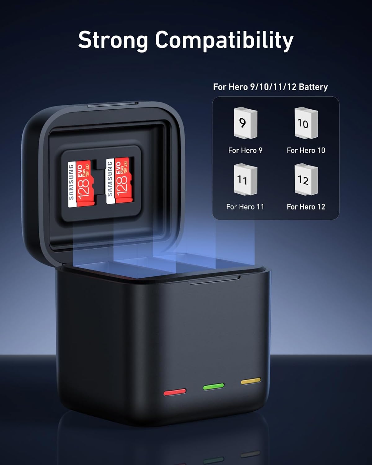 Compatibility: GoPro rechargeable lithium batteries (e.g. HERO9, HERO10, HERO11)