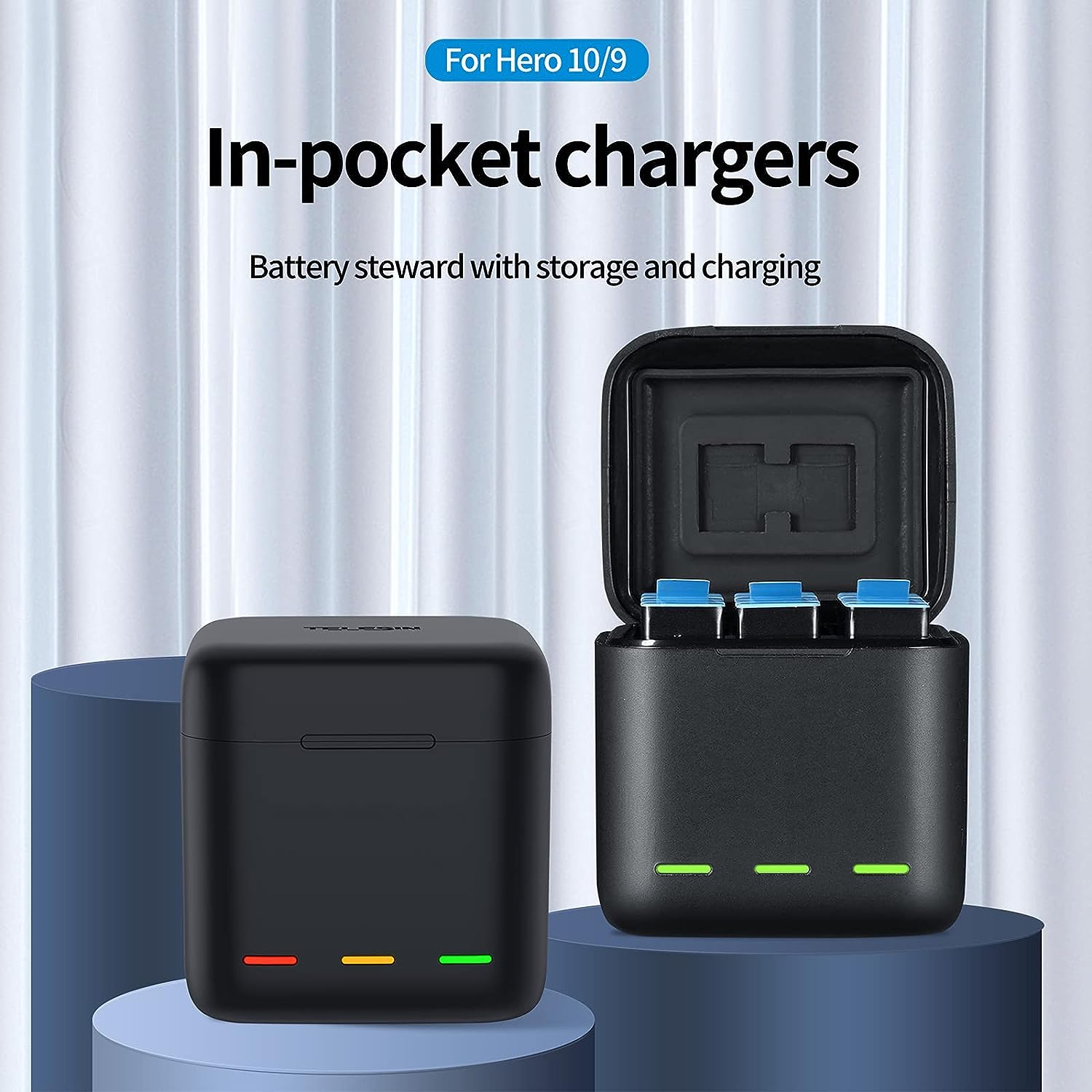 Telesin GP‑BCG‑901 3‑Channel USB‑C Charging & Storage Box for GoPro Batteries |