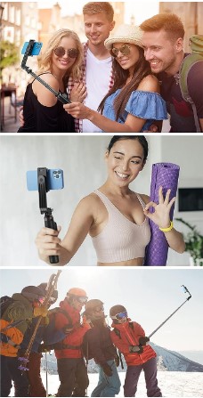 The Telesin vlog selfie stick features a built-in Bluetooth remote, allowing you to capture photos or videos from a distance — perfect for group shots, scenic vlogs, or solo travel recordings. With its integrated tripod base, this stick easily transforms into a selfie tripod for steady hands-free shooting.