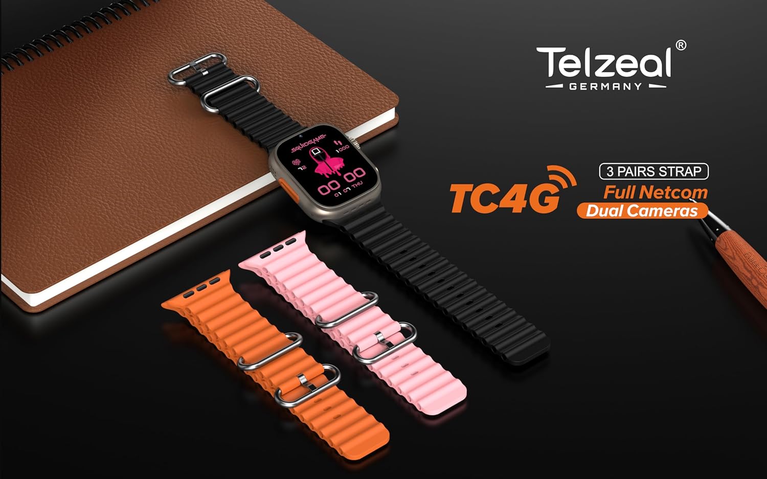 Telzeal TC4G Dual Camera Smartwatch – 2.2″ AMOLED Display, 4G SIM Support, IP67 Waterproof, Heart Rate Monitor,