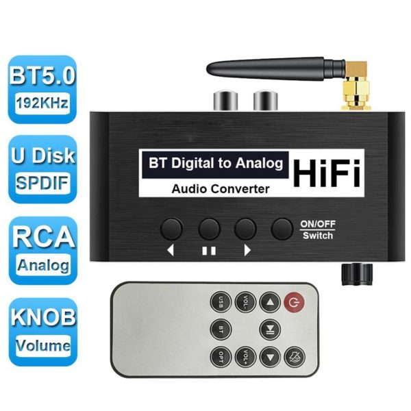 Enhance your audio experience with the TERSELY 192KHz Digital to Analog Audio Converter, designed to seamlessly bridge the gap between modern digital devices and traditional analog audio systems. This versatile converter supports optical (Toslink), coaxial, and Bluetooth 5.0 inputs, delivering high-fidelity analog output through both RCA and 3.5mm jacks.