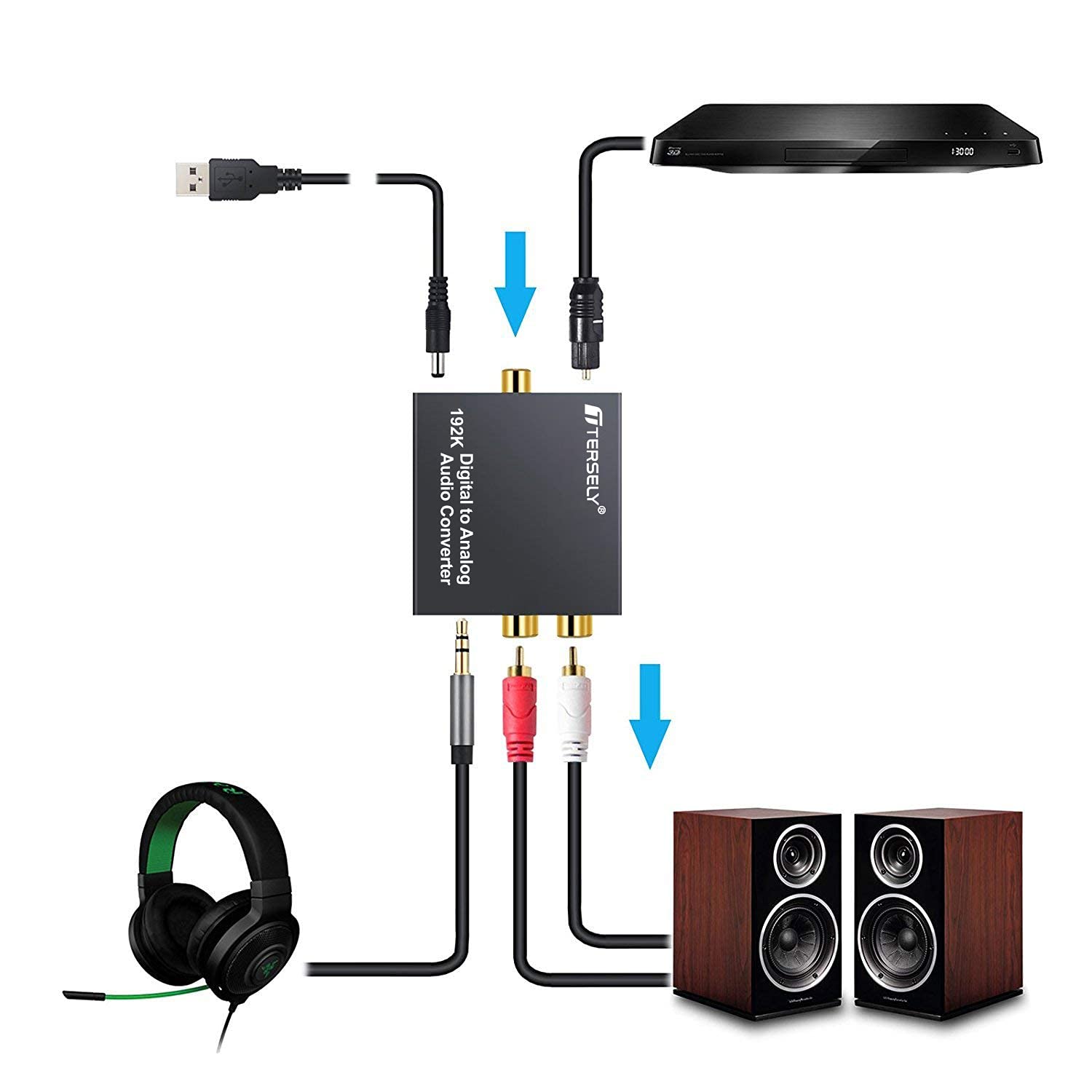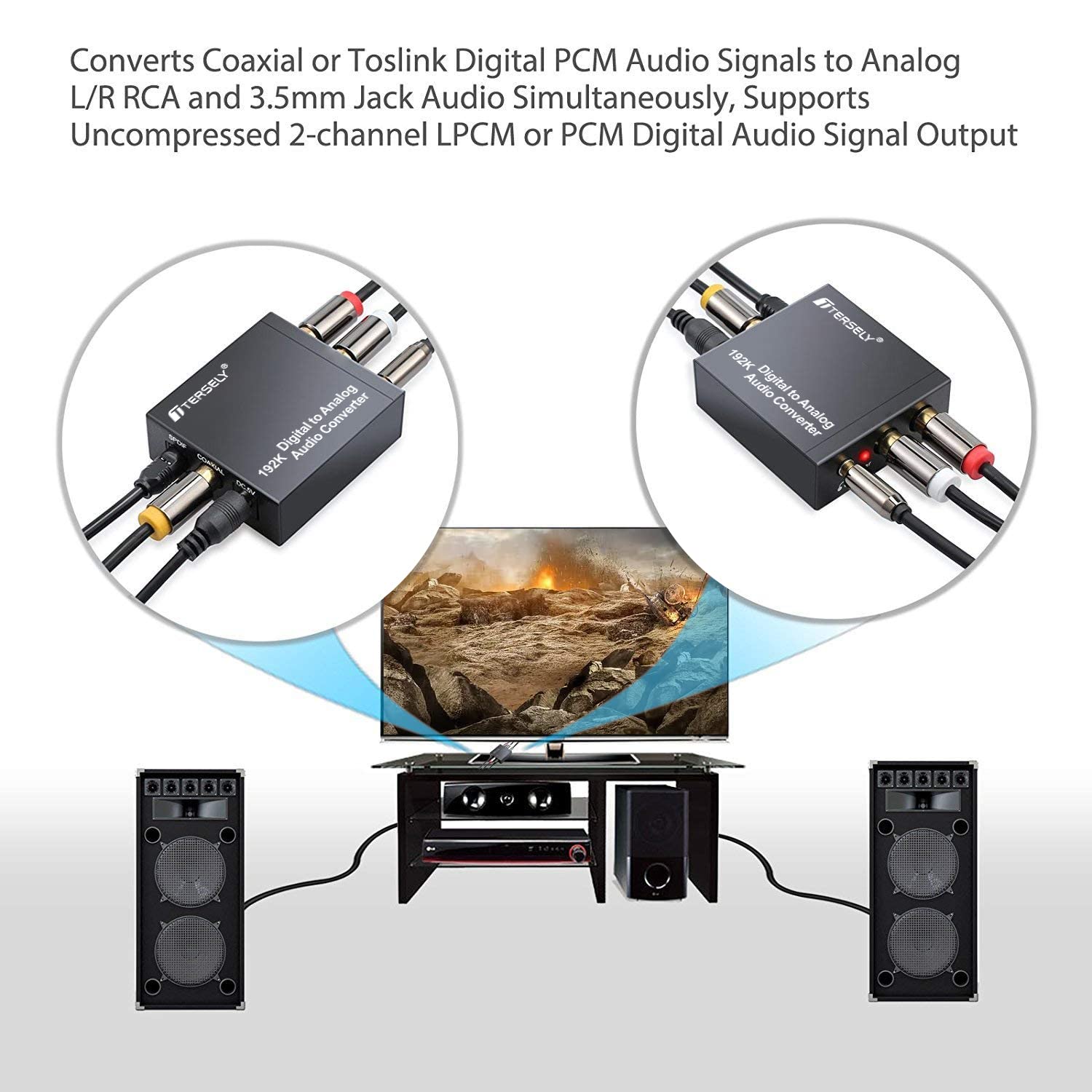 TERSELY 192KHz Digital to Analog Audio Converter with Bluetooth 5.0 – Optical/Coaxial to RCA & 3.5mm Output, Volume Control –