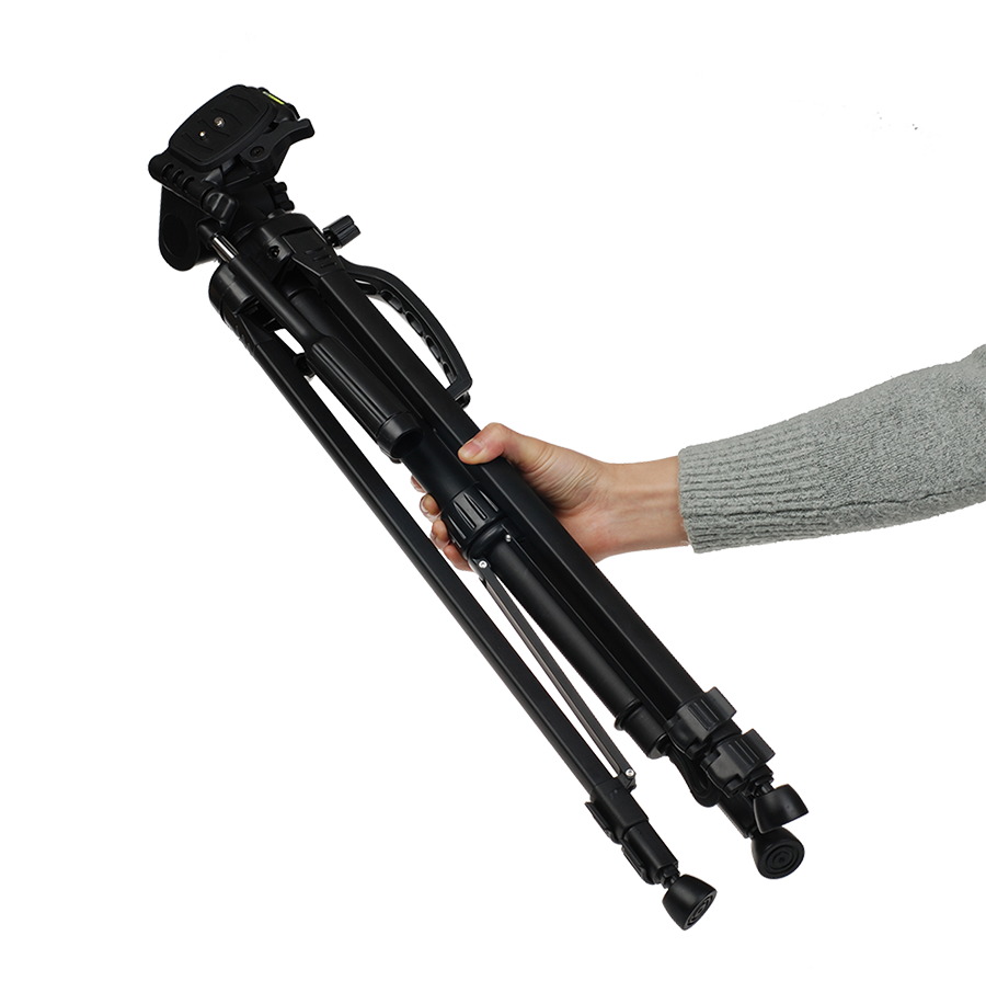The tripod stand for photography includes a built-in bubble level for accurate alignment and a 3-way pan head for smooth panning and tilting — perfect for video recording or panoramic shots. With a max load capacity suitable for most devices, it also comes with a tripod carry bag for easy transport.