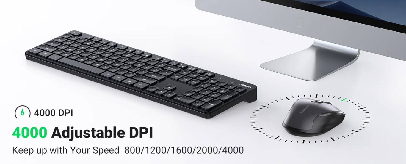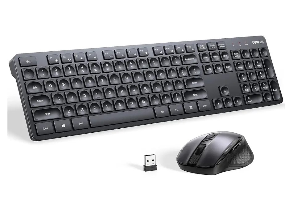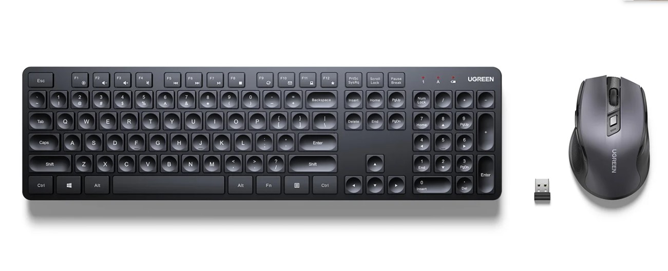 UG-KB-Mouse-Combo Green Wireless Keyboard and Mouse Set – Ergonomic, Silent Keys, USB Plug & Play,