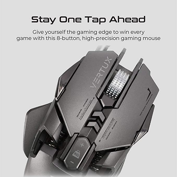 Equipped with six programmable buttons, the Vertux Drago offers customizable controls to suit your gaming style. The anti-slip rubber scroll wheel provides precise scrolling, while the braided cable enhances durability.