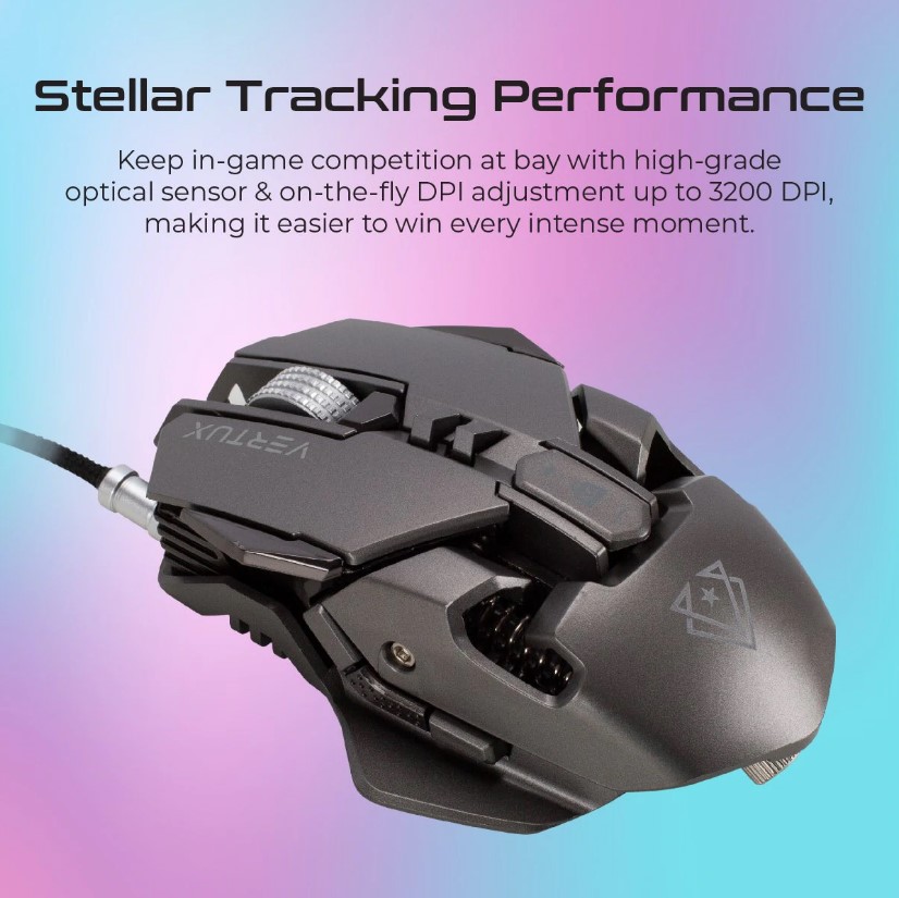 Elevate your gaming experience with the Vertux Indium Gaming Mouse Grey/Silver, designed for precision and comfort. This ergonomic gaming mouse features a high-performance optical sensor with adjustable DPI settings up to 3200, allowing you to customize sensitivity for different gaming scenarios.