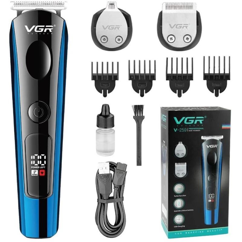 VGR V-259 Professional 3-in-1 Hair & Beard Trimmer – Cordless, 600mAh Battery, LED Display, Turbo Function, Stainless Steel Blades, USB Charging,