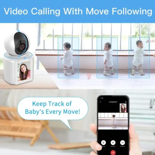 Equipped with WiFi connectivity, the LCP1 smart camera Oman supports video calling, two-way audio, and real-time remote viewing via mobile app. The included LCD display ensures immediate in-room visibility – ideal for use as a baby monitor with screen, home surveillance unit, or indoor CCTV.