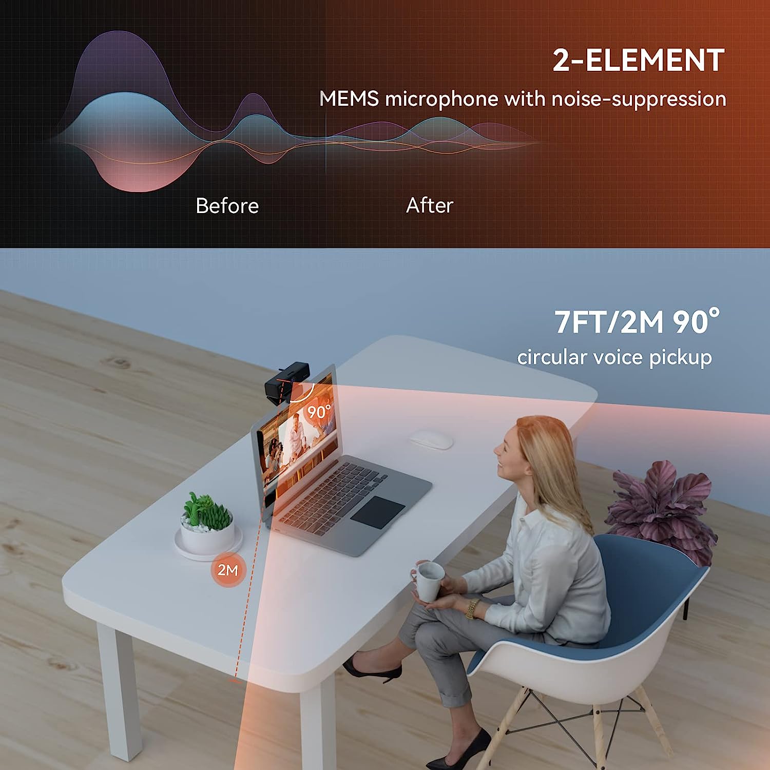 Featuring a manual focus lens, the Mix LD98T 1080p webcam lets you precisely adjust focus to suit your lighting and position, ensuring your image always looks crisp. The built-in noise-reducing microphone provides clear, natural sound—ideal for remote work, online classes, or keeping in touch with loved ones.