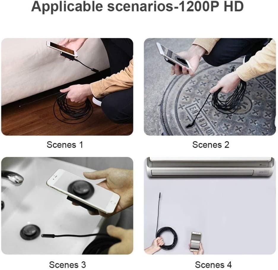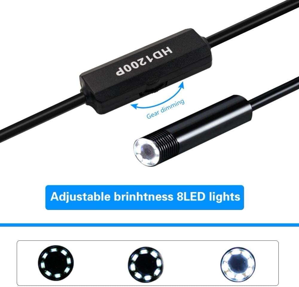Compatible with both Android and iOS devices, this smartphone endoscope connects via WiFi, allowing real-time viewing and recording through a dedicated app. The adjustable brightness feature lets you customize illumination based on your inspection needs.