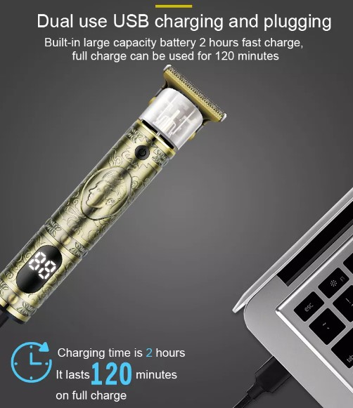 The YACD D-001 comes equipped with an intuitive LED display, providing real-time battery status and charging indicators. Its USB charging capability offers convenience, allowing you to recharge the trimmer using various devices.