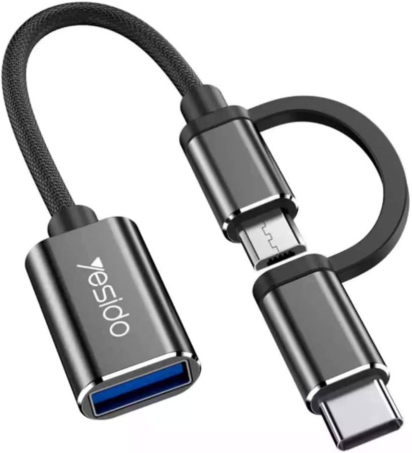 Yesido GS02 2‑in‑1 OTG Connector – Micro‑USB & USB‑C to USB‑A, Braided 10 cm, Fast Data Transfer –